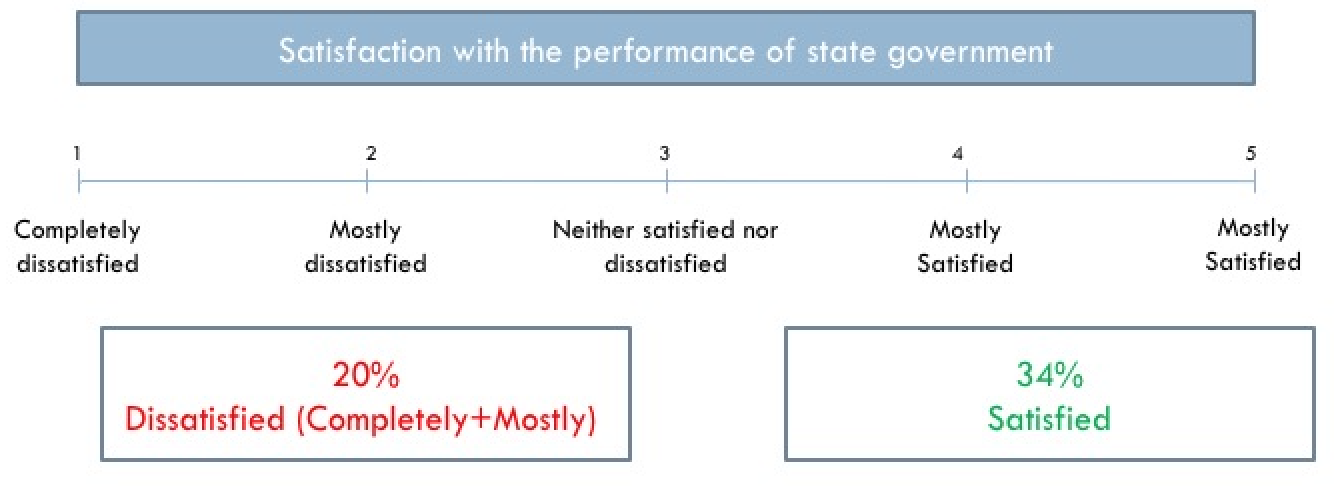 Of all people sampled in the Nalgonda Lok Sabha constituency wide, only 34% of the people are completely satisfied with TRS party governance. Although this is not the CM KCR’S leadership performance indication, a lot of local factors, MLA’s and the way policy implemented in the ground level has to do with such a low satisfaction rate. On the other side of the spectrum a 20% of the people completely dissatisfied and have shown disinterest in TRS governance.