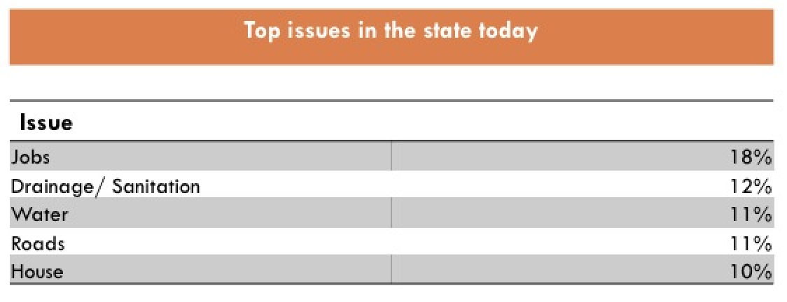 Taking further cues from issues to be handled immediately in the constituency, TRS may have uphill task ahead as the top issues are employment (18%), sanitation (12%) drinking water (11%) and housing (10%). As TSPSC could not provide enough jobs in the district coupled with bad show on delivery of Double bedroom houses, TRS party has to work hard to convince voters on development agenda.